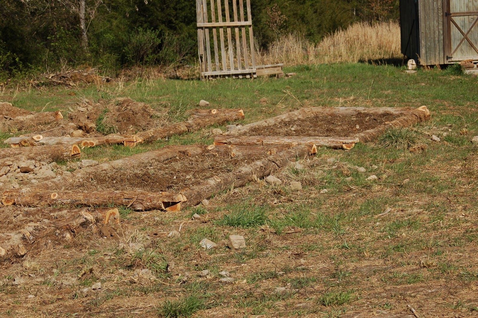 Our friend John came by with his back hoe and rustled up some soil from different parts of the property for our garden boxes and at the same time made our road a little more user friendly.